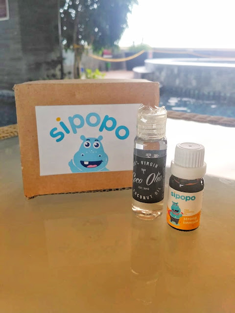 Sejak hari itu, tiap malam Mama mengoleskan minyak SIPOPO untuk Mas Amay dan Dek Aga. Sebenarnya SIPOPO adalah produk essential oil yang diformulasikan khusus untuk anak-anak. SIPOPO ini obat luar, sangat membantu jika anak-anak kita tak suka obat. Tapi karena Mama suka baunya, jadi Mama dan Papa juga pakai, hehe...